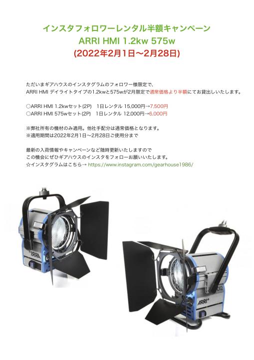インスタフォロワーレンタル半額キャンペーン ARRI HMI 1.2kw 575w